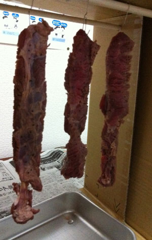 The Prize – in the early stages. The meat looses a good deal of size as it dries. |