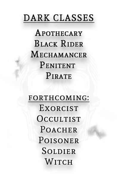 - The Apothecary, Black Rider, Mechamancer, Penitent, and Pirate classes.