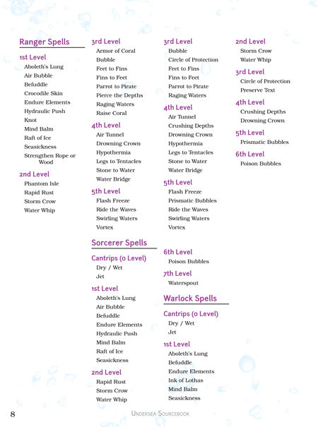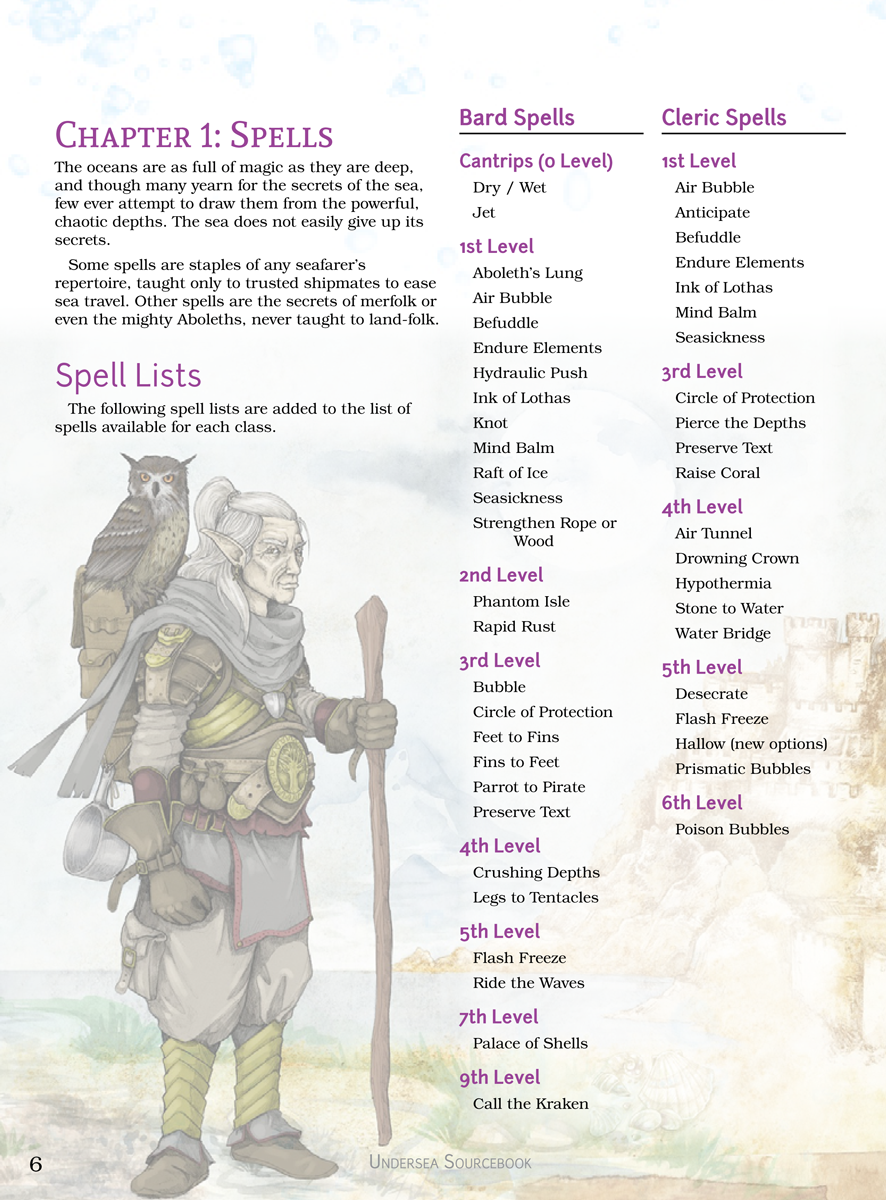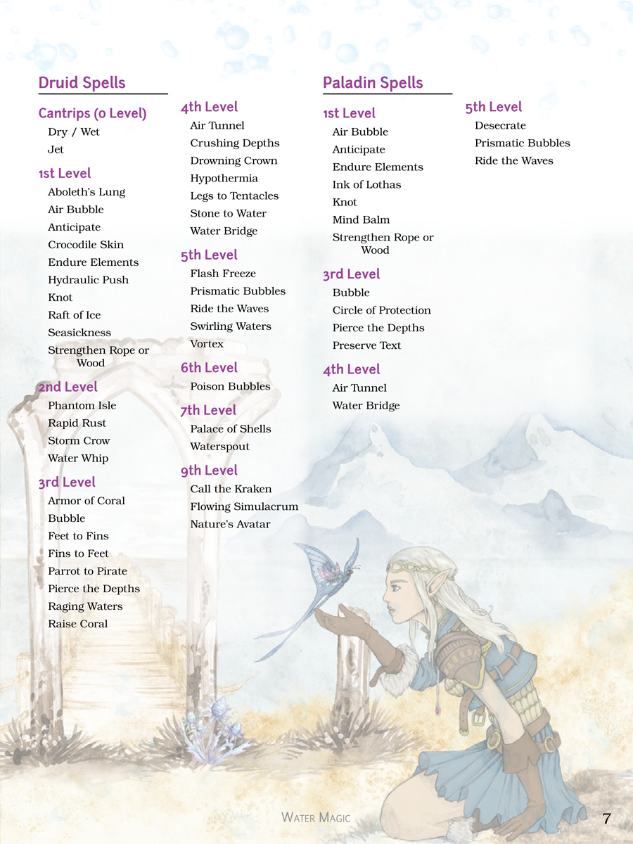 The Undersea Sourcebook series provides players and Dungeon Masters with everything they need to explore the crashing waves and the vast ocean depths below. In Undersea Sourcebook: Water Magic, the third book of the series, you’ll find magical items and spells to expand your adventures below and above the waves.